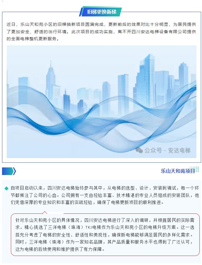 乐山天和苑旧梯换新项目圆满成功,四川安达电梯展现专业实力