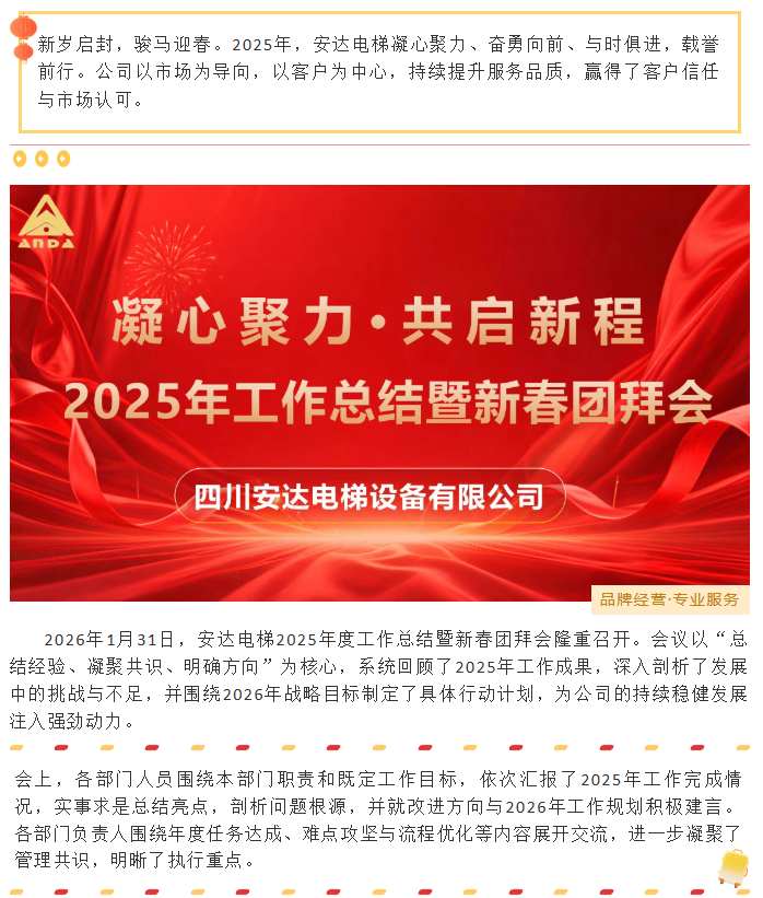 凝心聚力 共启新程||安达电梯2025年度工作总结暨新春团拜会圆满举行